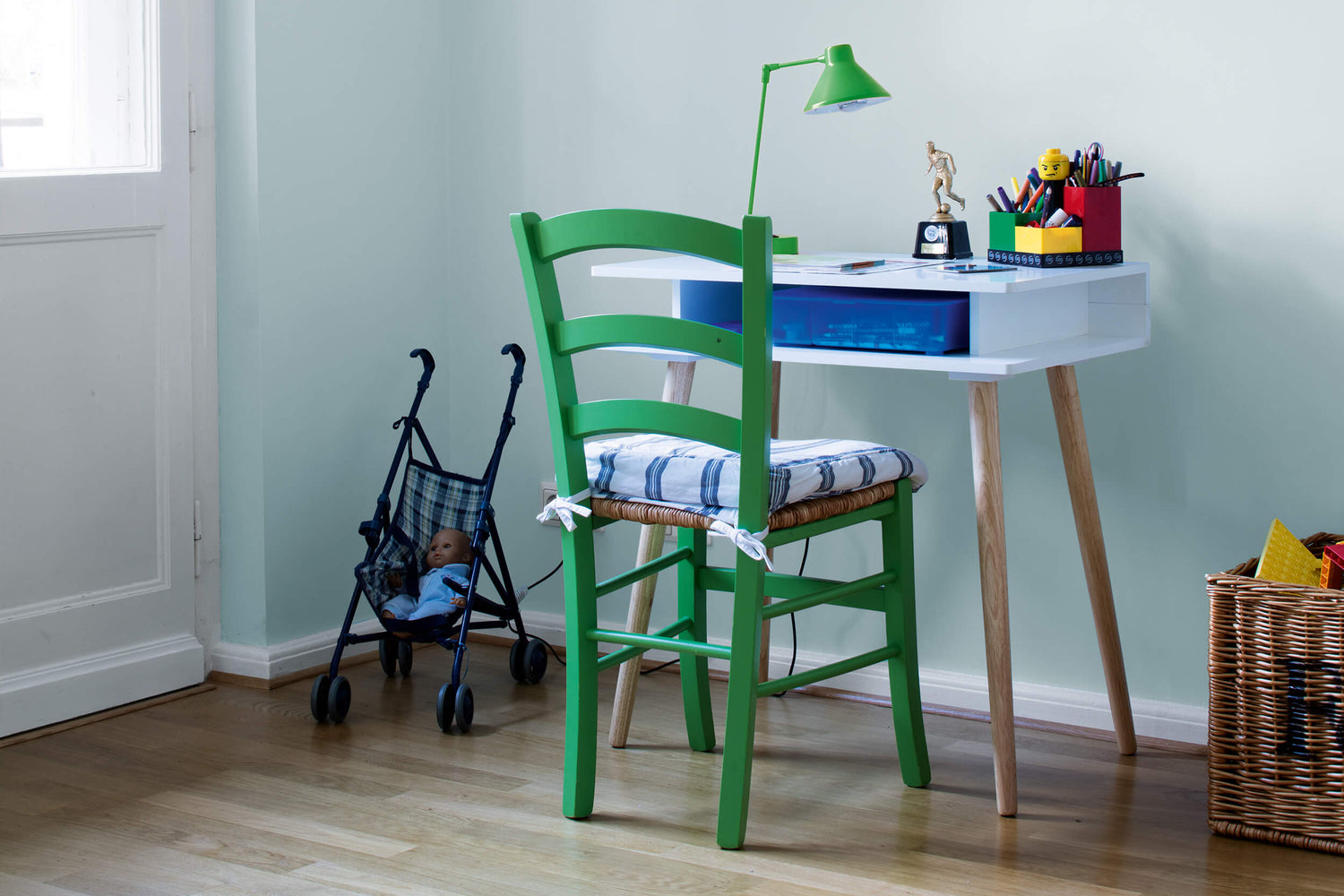NO 66 INNOCENCE symbolisiert die Suche nach Unschuld in den Nachkriegsjahren. Das zarte Mondstein-Grün verleiht dem hellen Kinderzimmer eine unaufgeregte Atmosphäre. INNOCENCE ist eine ausgeglichene, harmonische Farbe die es schafft, auch kleine Räume optisch zu vergrößern.