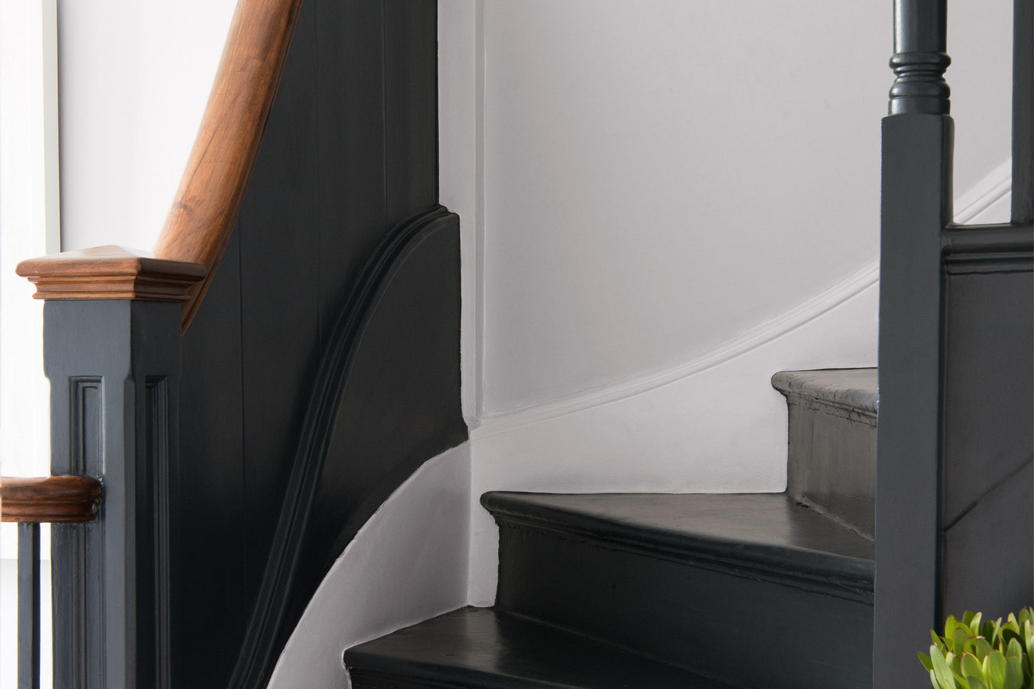 Auch die Treppe ist im zur Wandfarbe farblich exakt abgestimmten Lack FINEST WOOD & METAL PAINT von NO 70 TRIPPY gestrichen.DAS KÖNNTE SIE AUCH INTERESSIEREN