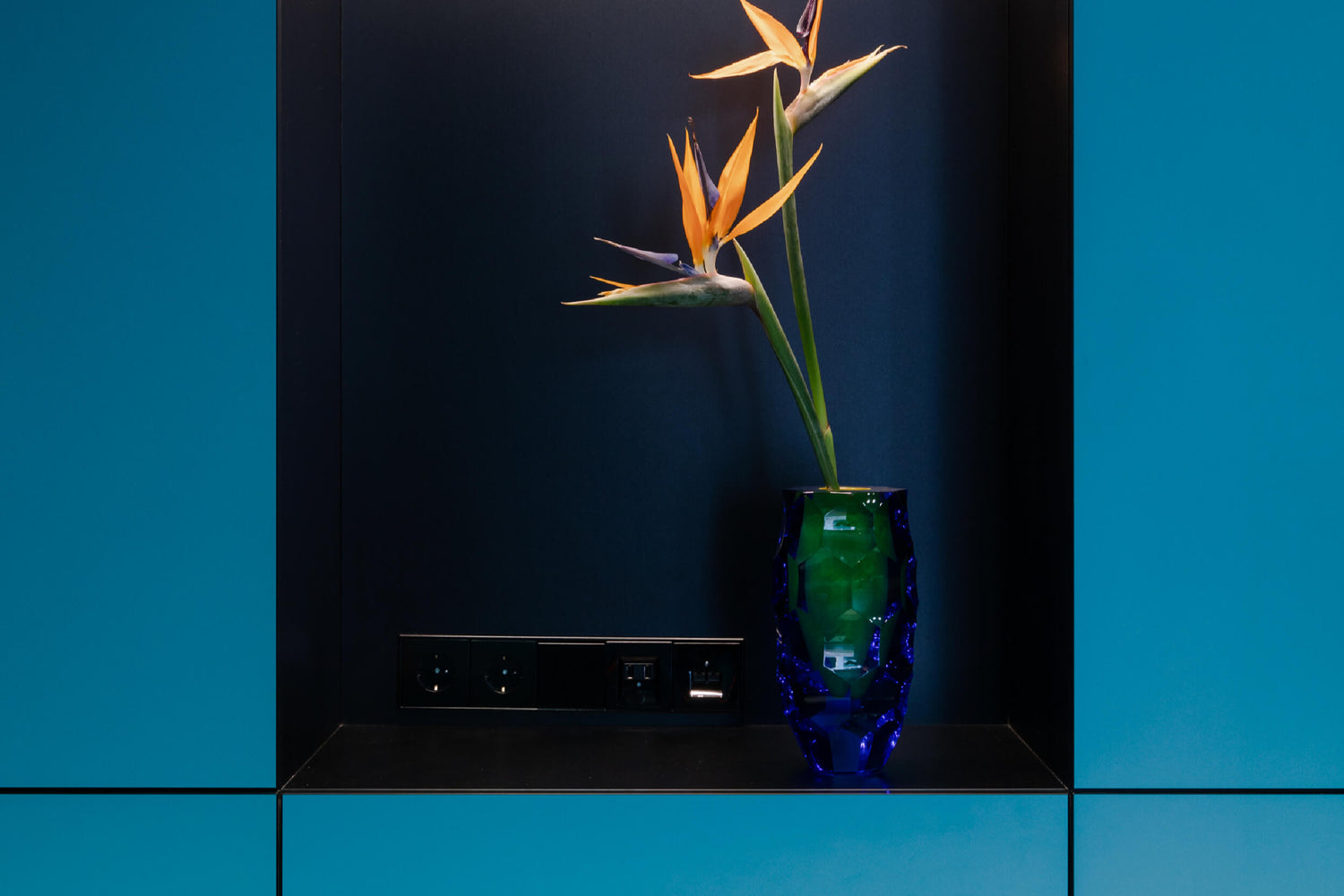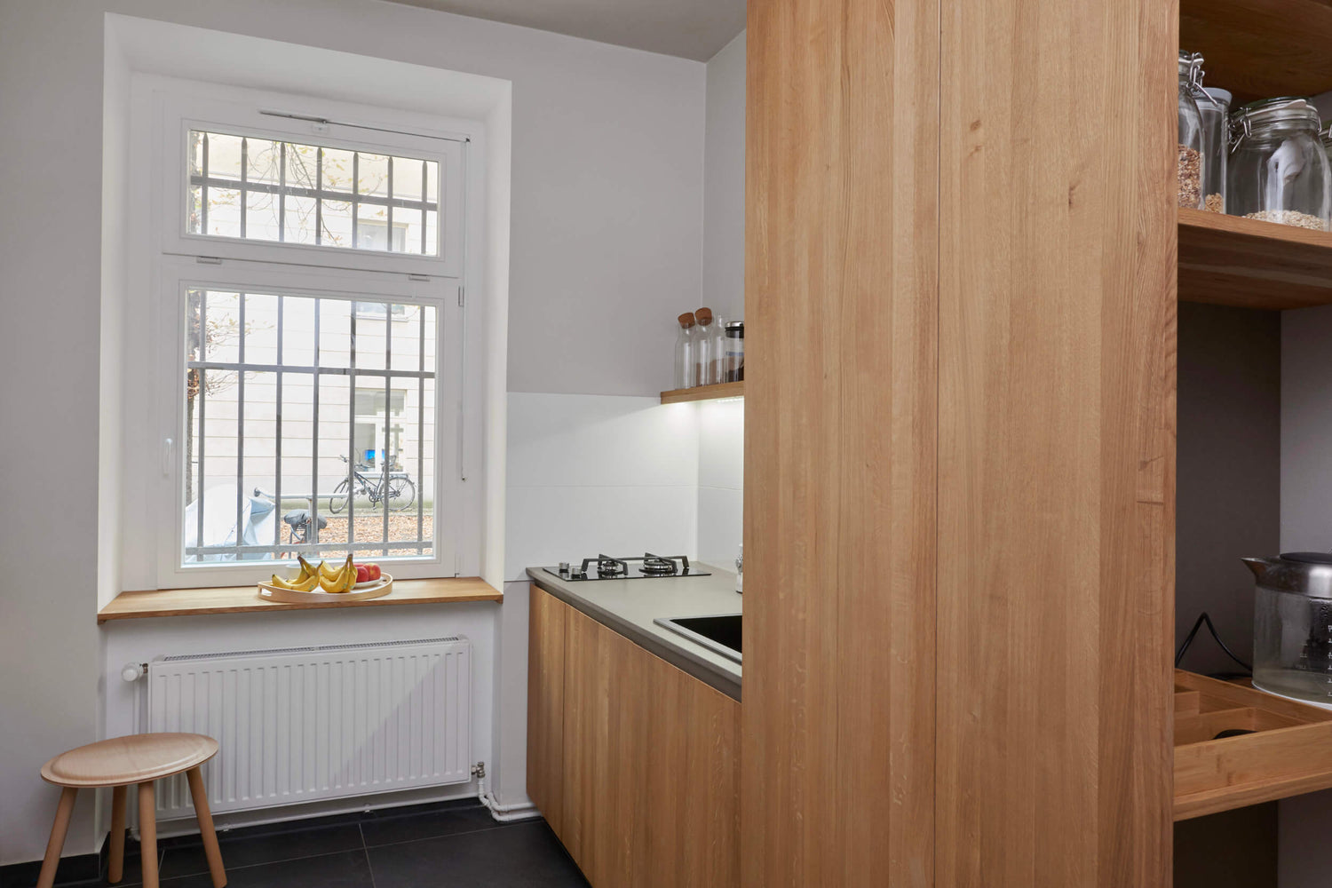 In der Küche wählte Maj van der Linden die Ikone NO 31 PILLBOX – ein charmantes Hellgrau. „Der Farbton ist warm, aber zurückhaltend. Er harmoniert mit den Materialien des minimalistischen Küchendesigns und lässt den Raum zu einer großen Einheit zusammenwachsen“, erklärt die Designerin.