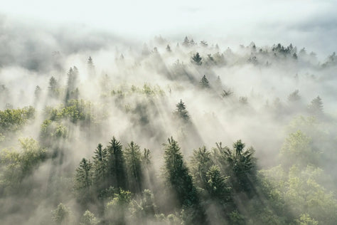 Grüntöne holen die Natur in Räume und können in urbanen Wohnsituationen die angenehm entspannenden Assoziationen von Wäldern und Wiesen in die eigenen vier Wände transportieren. Besteht der Blick bereits auf Bäume, Gärten oder Parks ver- längern sie diesen Blick in den Innenraum und schaffen so wohltuende Sichtachsen. Ob schattig oder intensiv – Grünnuancen gehören zu den Lieblingen der Innenraumgestaltung. Die hier ausgesuchten Töne erinnern an die märchenhaften Stimmungen des Schwarzwaldes im Nebel in seinen Tälern und Auen.