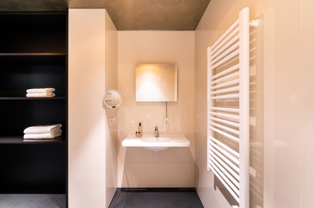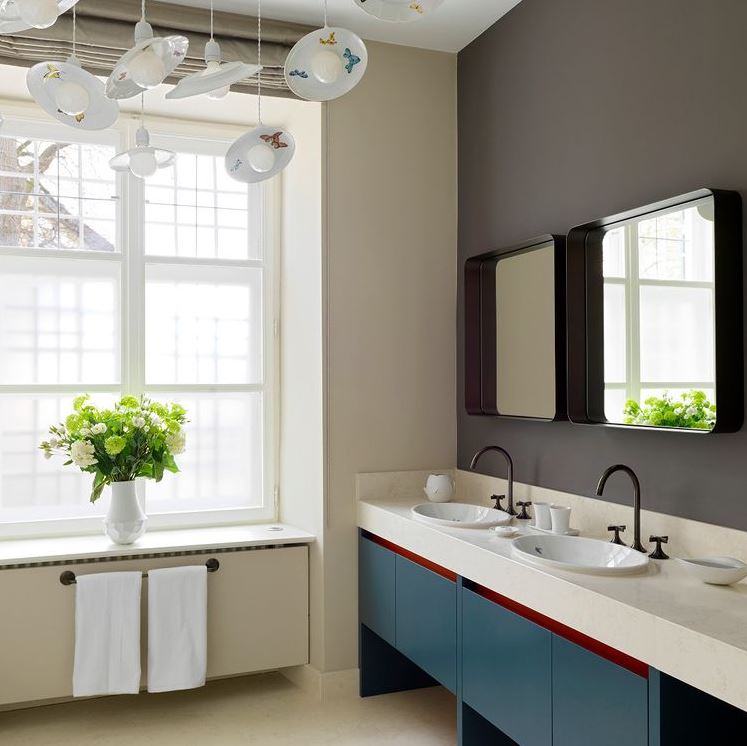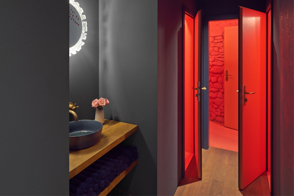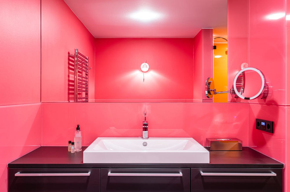 Ein Raum mit Determinanten: Keramik, Spiegel, Fliesen, Armaturen. Notwendige Materialien um die gewählte Farbe eine Klammer bilden muss. Das Farbkonzept bildet die Konstante bei der Vielzahl der Materialien. Und das gilt für 4 + 1 Flächen = Wand + Decke! Welche Farbtöne das sind, hängt entscheidend von der Lichtstimmung ab. Die passende Nuance sollte das Licht auffangen und den Raum sanft umhüllen, damit eine schöne Stimmung schaffen und dem Teint schmeicheln. Unsere neutralen, natürlichen Farbikonen halten sich vornehm zurück. In dem oft kleineren Gäste-WC darf es ruhig etwas mehr sein! So erhält ein kleiner Raum einen großen Charakter. Außerdem für alle Badezimmer ein entscheidender Vorteil: Für beanspruchte Flächen bieten wir unsere Farbtöne als Silk Fish an, unsere strapazierfähige und abwaschbare Variante.
