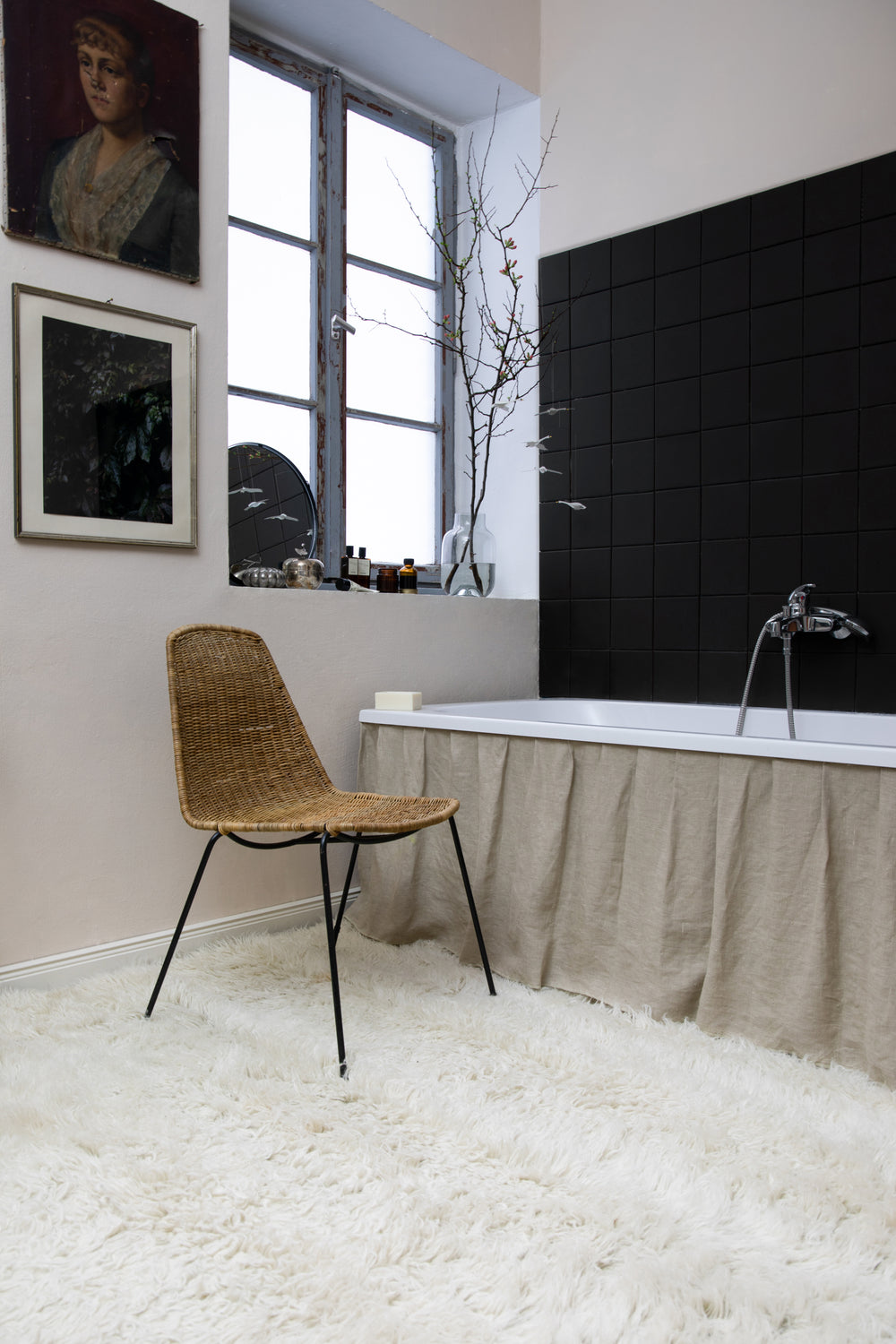 Wollweiß in einer Rosé-Nuance. Der Flokati – griech. phlokátē, wollene Decke – ist ein traditioneller Teppich aus dem Pindos-Gebirge in Griechenland. Seit den 70ern ist er ein Must-have des Cocooning-Trends.Mark Seelen | Architekten Giorgio Gullotta